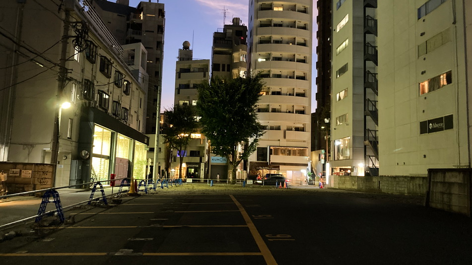 ファミリーマートの脇からにゅっと車が出て来てた駐車場とくっついてわりと大きい土地になった。となりのZESTより大きい。これはマンションなら相当なものになりそうですね。