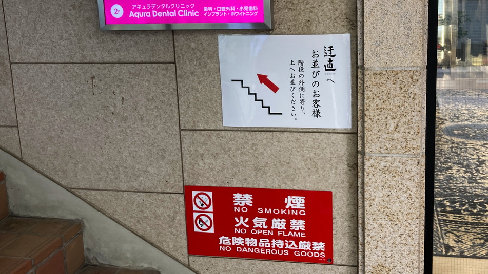 地下のお店で2階にあがる階段までお並びくださいの案内がある。全然ならんでなかったけど。